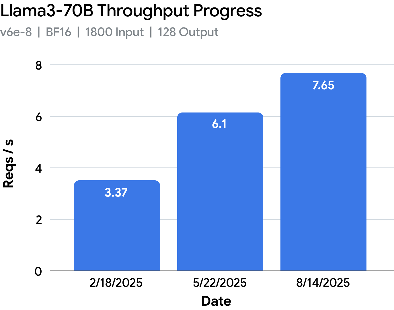 vLLM TPU has come a very long way from the prototype performance in February 2025, reaching nearly 2x-5x performance on those same workloads, while also improving model coverage and usability.